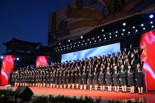 中國張掖網訊:6月30日晚,甘州區公安局組成150名黨員的合唱團,積極參加區委舉行的“喜迎十九大,永遠跟黨走”主題文藝晚會。