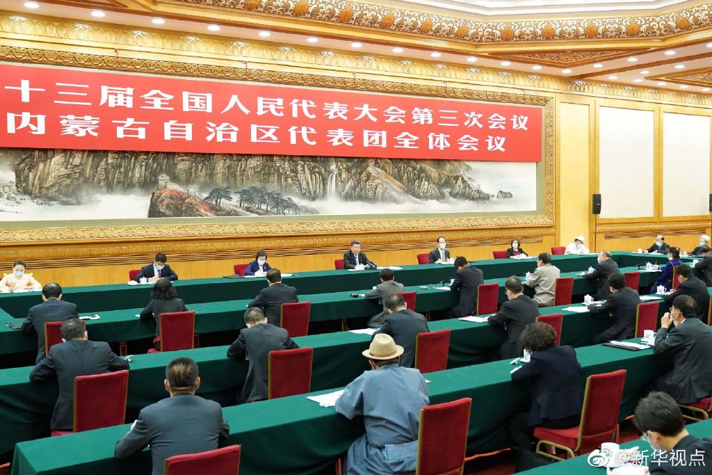 22日下午,中共中央總書記、國家主席、中央軍委主席習近平參加他所在的十三屆全國人大三次會議內蒙古代表團審議。