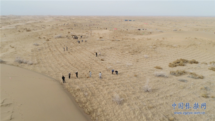 “為了確保治沙壓沙質(zhì)量,我們采用根區(qū)注水造林的方法栽植梭梭,這在干旱缺水的沙漠可以提高成苗木活率。技術人員嚴格按照技術規(guī)程全程進行指導,切實提高防風治沙的效果,確保固一片、牢一片、植一片、綠一片。”正在現(xiàn)場指導壓沙的縣治沙試驗站站長楊向剛介紹說。