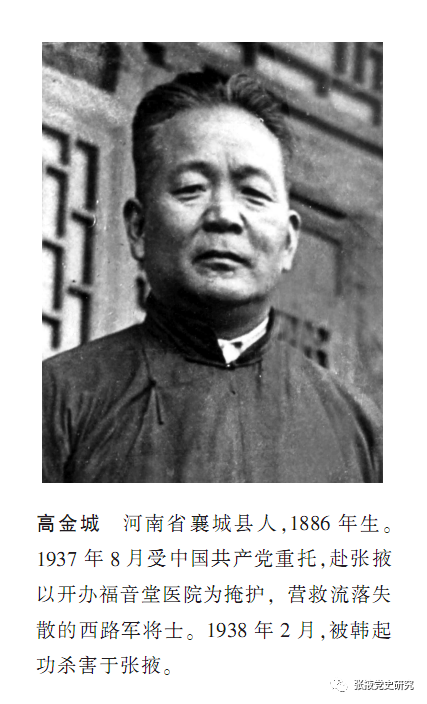 1937年8月,高金城到張掖后,與張掖西路軍秘密黨支部取得聯(lián)系。從此,西路軍秘密黨支部的活動轉(zhuǎn)入有組織、有領(lǐng)導、有計劃、有目的地全面開展營救工作的階段。高金城與韓起功交涉,安排王定國、徐世淑進福音堂醫(yī)院當護士,利用看病送藥的機會,出入敵人兵營,搜集情報,傳遞信息。黨支部還復寫了“中國工農(nóng)紅軍改為八路軍,在蘭州駐有辦事處,地址在蘭州南灘街54號,朱良才同志在那里接應你們”的指示路條,散發(fā)給失散各處的紅軍戰(zhàn)士。