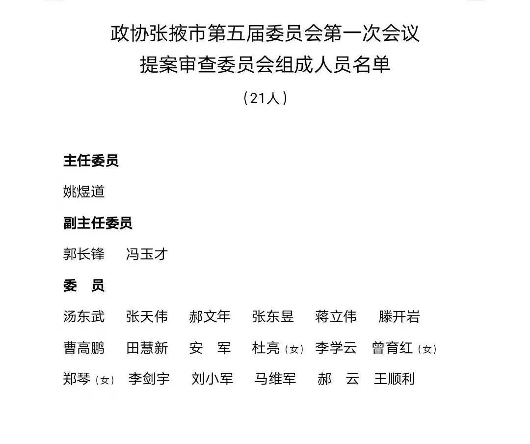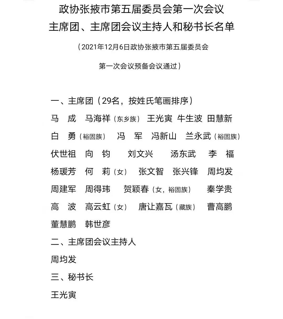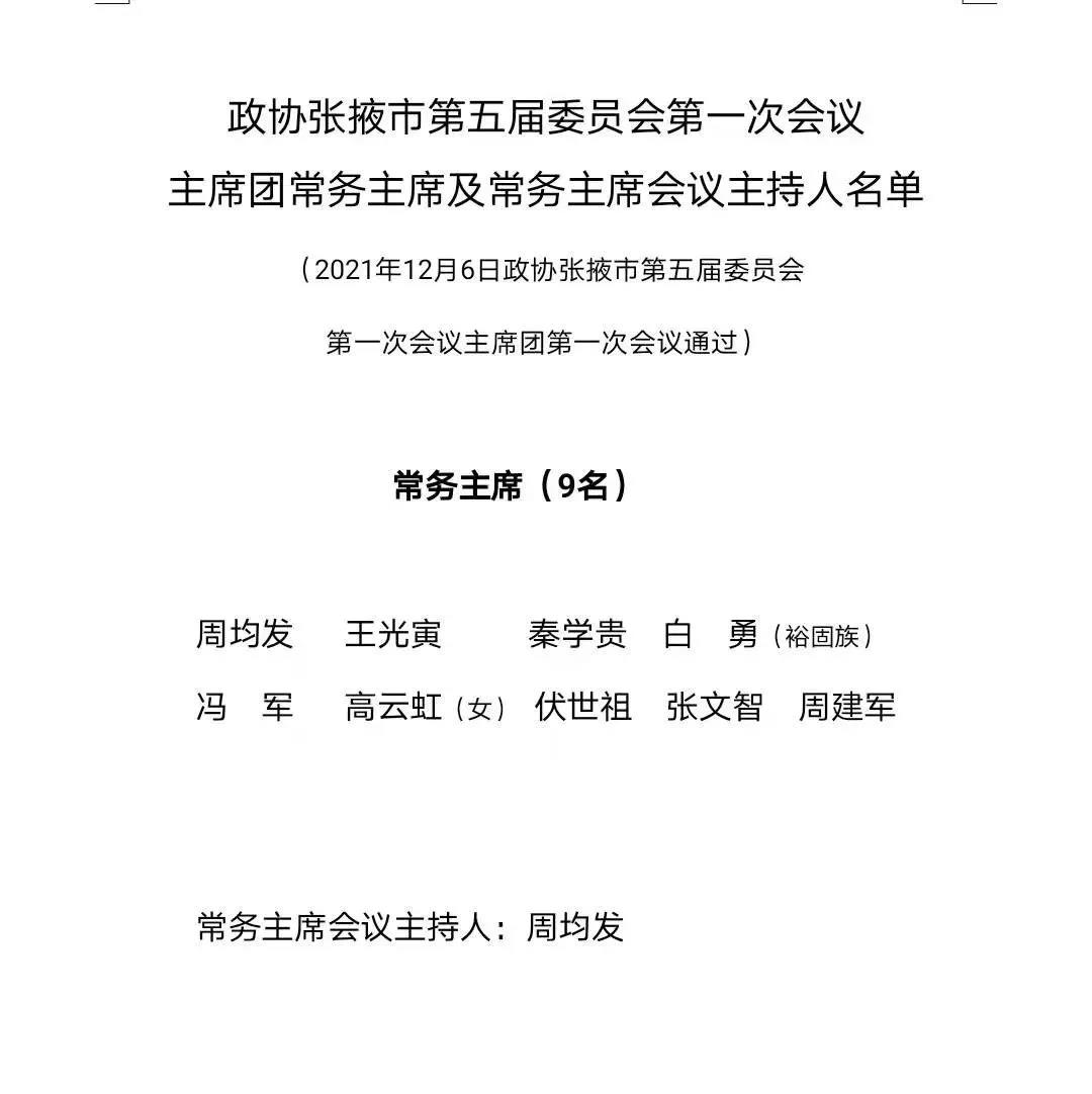 【聚焦張掖兩會】政協張掖市第五屆委員會第一次會議相關名單