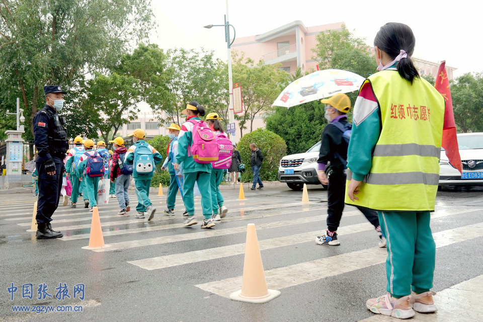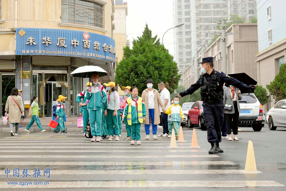 中國張掖網訊 5月25日早上,張掖普降小雨,道路積水濕滑,給中小學生上下學帶來極大的不便和安全隱患。擔負護學任務的張掖市公安局特警支隊的特警隊員提前到崗到位,在甘州區各學校周邊護送學生上下學。陰雨天接送學生車輛多、駕駛員視線差,巡特警隊員在維護安全的同時積極疏導交通,為廣大師生撐起“安全傘”,確保了道路暢通和學生安全,用實際行動暖心護學。(馬興國)