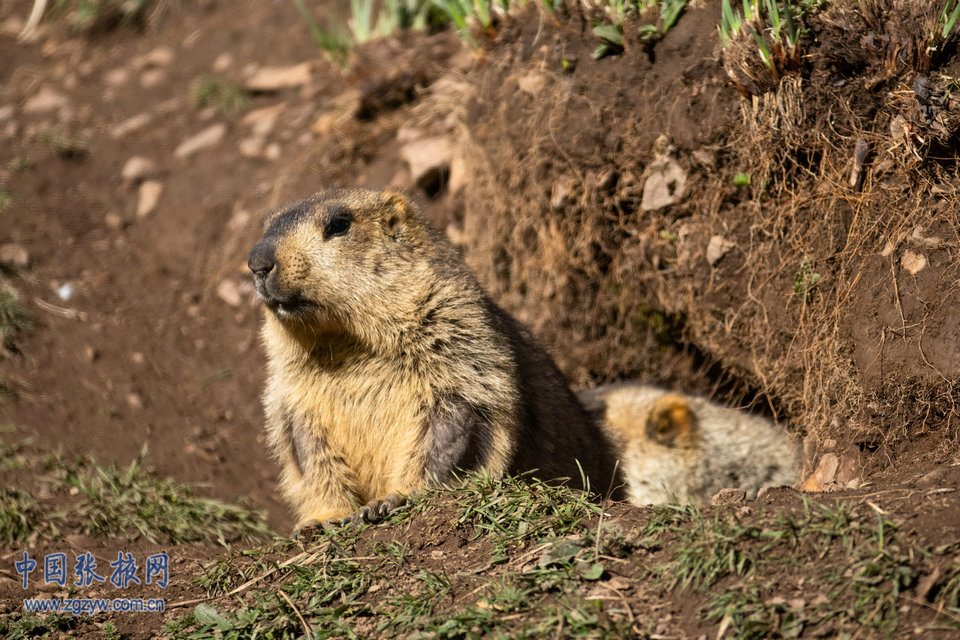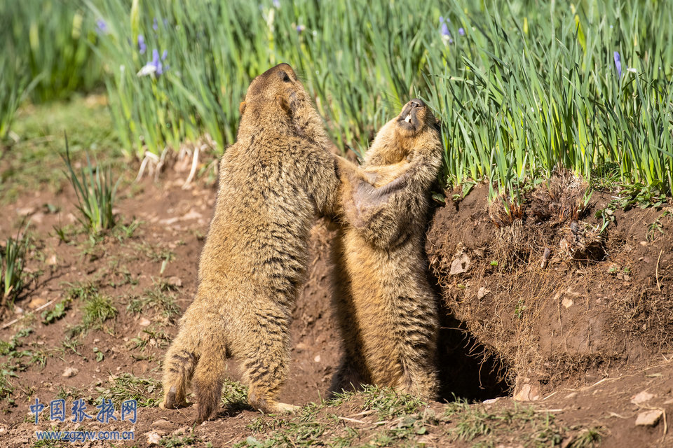 中國張掖網(wǎng)訊 祁連山國家公園進入夏季以后,喜馬拉雅旱獺清早在山坡上吃著馬蓮花的葉尖,喝著純潔的露水,吃飽喝足后,要么山坡上曬太陽,要么就在草坡上嬉戲“打架”。(吳瑋)