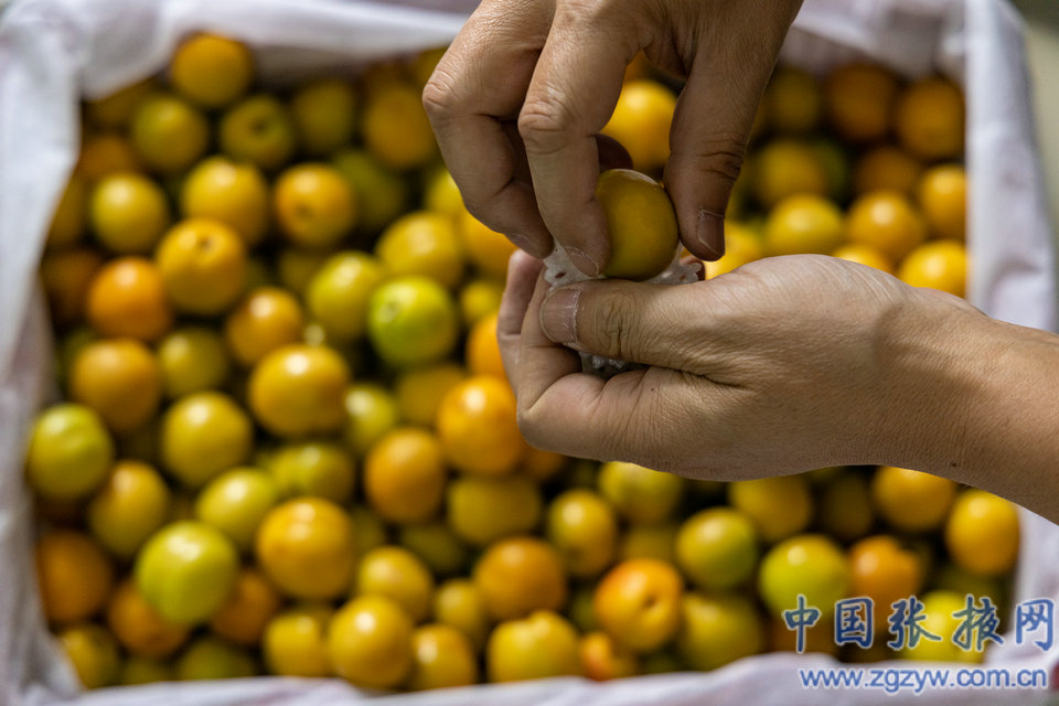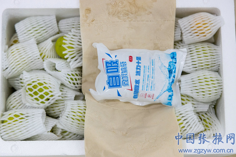 6月29日,張掖郵政快遞員在挑揀珍珠油杏,套網套放冰袋,打包封裝,趕最快郵運班次發運。
