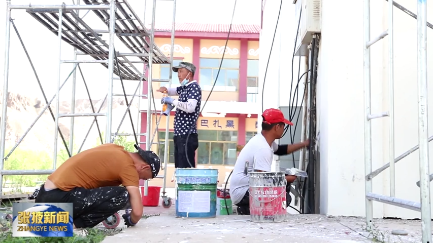 在肅南縣康樂鎮,忙碌的身影隨處可見。施工人員與農牧民配合協作,有序推進馬路改造、樓頂防水、溝渠防護欄建設等風貌改造作業。