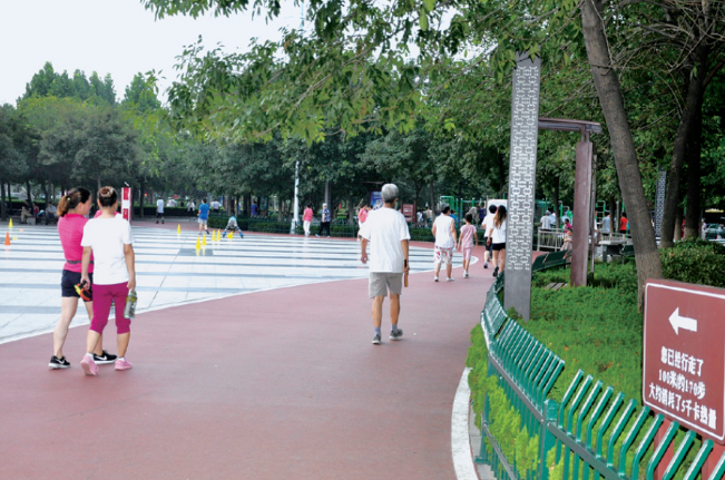 改造后,彩色瀝青步道的防滑性、舒適性、排水性均效果良好,且能有效減少道路輻射熱和都市熱島效應,每天在此鍛煉健身的市民達上萬人。為方便服務群眾,在每處廣場都設置了便民服務亭、志愿服務崗亭,由廣場管理方負責管理,配備了藥品、雨傘、維修工具等物品,在顯著位置公示服務制度和服務項目,廣場管理人員和志愿者共同為市民群眾提供常態化的便民服務。