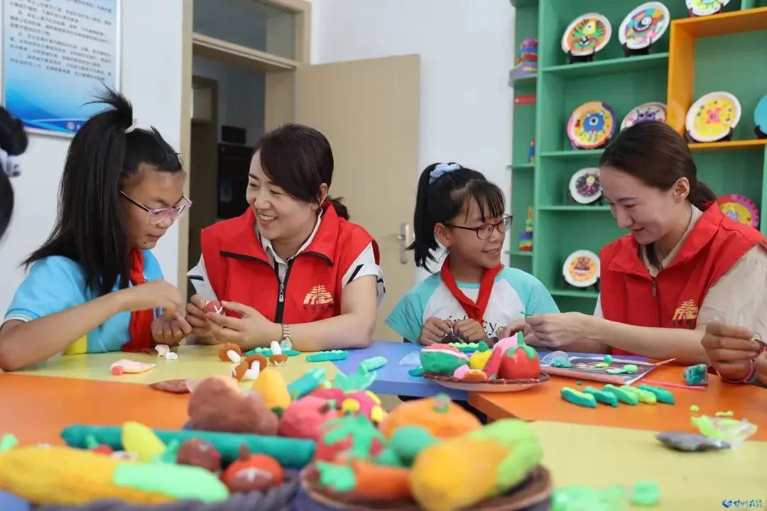 在黨寨鎮新時代文明實踐所里,游戲區的樂高、讀書角的繪本等設施一應俱全,黨寨鎮中心學校的老師正陪著孩子做手工、讀繪本、學書法。