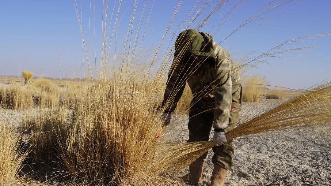 芨芨草是一種耐旱、根深、耐寒、不懼鹽堿的野草,即便是在最貧瘠的土地上,也能茁壯成長。它用途豐富,可以扎掃帚、制作工藝品、造紙。據了解,每斤芨芨草在市場上可以賣到1塊多錢,一個人一天輕輕松松就可以割兩三百斤,就是兩三百塊錢的純收入,一個冬天下來,收入一萬多元,很輕松。