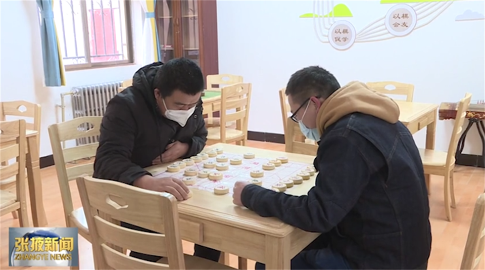 在甘州區南街街道泰安社區“驛家親”網格黨群服務驛站,記者看到社區居民們正在下象棋、打乒乓球。