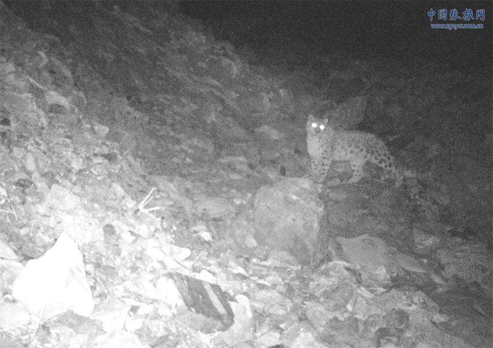 中國張掖網民樂訊 近日,在張掖市民樂縣境內的海潮壩附近,祁連山國家公園甘肅省管理局張掖分局大河口保護站管護員通過架設的紅外相機記錄到了一只雪豹捕食巖羊影像。