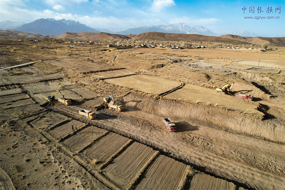 中國張掖網民樂訊 雖已仲春,但天氣依舊寒冷。在廣袤的民樂大地,一個個基礎水利工程有序推進,一項項重點水利項目建設如火如荼。