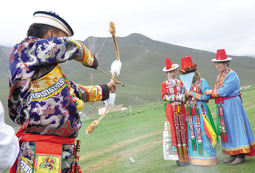 裕固族婚禮與裕固族的發展歷史、生產生活方式及宗教信仰有著緊密的聯系,是裕固族原始薩滿教遺俗的再現。裕固族婚禮儀式繁多而隆重,主要有求親、定婚、選人請客、娘家宴請、姑娘戴頭面、惜別送親、打尖迎親、馬踏帳房、射箭拜天地、冠戴新郎、看驗酒席、酒宴頌歌、新娘打茶回親等12項程序、28個禮節。主要程序要進行3天,第一天為“開龍”,在女方家舉行出嫁儀式,第二天為“正龍”,在男方家進行婚禮儀式,第三天新娘打茶、回親,婚禮結束。整個婚禮組織嚴密,井然有序,內容精彩。裕固族婚禮的規模根據家庭的經濟條件可大可小,程序也可以適當地增加或縮減。裕固族的婚俗是裕固族人民日常生產生活的反映和思想情感的表達,可以感化人們的心靈,增進親戚和鄰里之間的和睦友好關系,對于傳承弘揚民族文化、發展民族地區經濟都具有非常重要的作用。 2011年,裕固族人生禮儀?婚俗被國務院列入第三批國家級非物質文化遺產代表性項目名錄。保護單位:張掖市肅南縣裕固族文化研究室。
