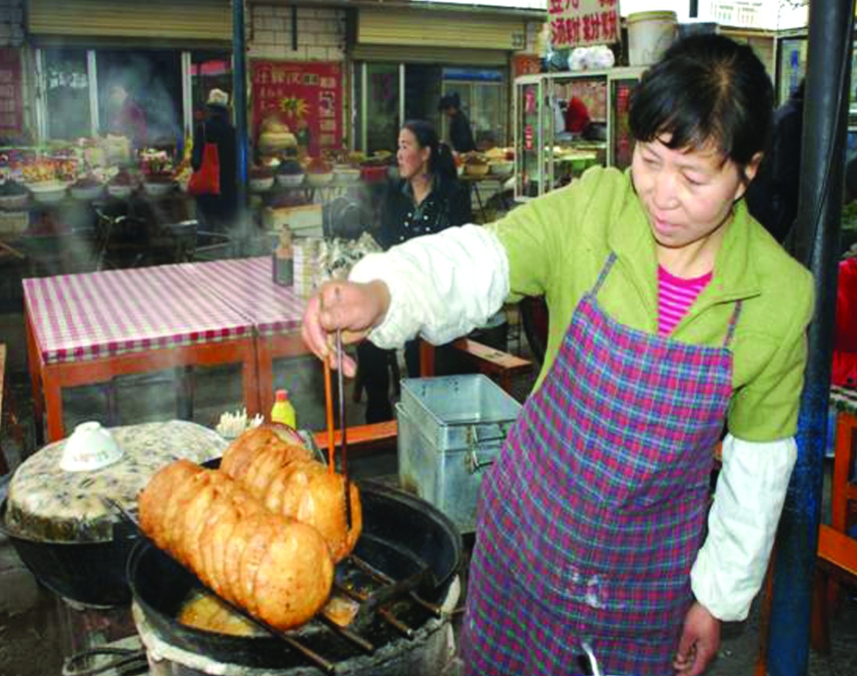 1.冬至蛐牙飯將面粉用鹽水和好,和得稍硬些,并且不停地揉面。把揉好的面用搟杖搟到2—3厘米厚,用刀切成1.5厘米長的方塊,拿干凈的梳子在上面搓,搓成形狀像蛐蚜一樣的面疙瘩。再把方塊面用雙手一上一下捏成所謂的巴郎狀,另外把方塊面用筷子搗成小窩,三者合起來下入鍋內。 2.臘八稠飯將洋芋切成2厘米大小的方塊下入開水鍋內,等煮到八成熟時,放適量的鹽,再將珍子(珍子,是當地方言,指小麥、大麥、蕎麥、玉米等糧食粉碎后形成的小顆粒)分多次均勻地下入鍋內,不停地攪拌,直到煮成糊狀,再放入綠色的蔬菜,即可食用。 3.羊肉伙亭子取適量的新鮮羊肉,用刀剁成一至兩厘米大小的碎塊,在鍋內倒入適量的清油,當地主要是胡麻、菜籽油,油達到八成熟,先放入幾片大蒜和辣椒,再將切好的肉全部放入開始爆炒,肉有八成熟。再將炒好的肉加入適量的水,要求不要一次加到位,分三至五次。第一次加水后調入適量的生姜、花椒、辣椒等調料。加水后的制作是用文火燉,一般燉四十分鐘左右,等聞到羊肉的清香時,說明肉已加工完畢。將和好的面用搟杖搟成圓形面皮,面皮搟好后,用手掐成一厘米大小的疙瘩,等鍋里水開,加入洋芋、胡蘿卜、南瓜等,然后將面疙瘩下完,再將燉好的肉倒入,這樣味美、地道的羊肉伙亭子就做好了。 4.羊肉燜卷子取適量的新鮮羊肉,用刀剁成一寸大小的碎塊。肉進鍋前倒入適量的胡麻油或菜籽油,油燒至八成熟時,先放入幾片生姜、大蒜和辣椒,再將切好的肉全部放入鍋內開始爆炒,肉有八成熟再加入適量的水,要求不要一次加到位,分三至五次。第一次加水后調入適量的花椒、辣椒等調料。加水后的制作是用文火燉,一般燉三十分鐘左右,將和好的面用搟杖搟成圓形面皮,擦上清油,將大蔥切成碎末放在上面,卷成長卷,用刀切成2厘米寬的卷子,把切好的卷子放入鍋內,上面再放點洋芋,加入適量的水,蓋好鍋蓋,文火燜20分鐘左右,這樣味美、地道的羊肉燜卷子就做好了。 5.水凈干糧將發酵好的面團,加入適量的蘇打粉或者燒堿面,然后充分揉勻。將揉勻的面切成適當大小的面團,用搟杖搟成圓形面餅放入鍋內。并在鍋內放一碗水。等面餅上火了要不停地轉,但不可以將面餅翻過來,直到烙熟為止。烙熟的面餅一面像饅頭,一面像干糧,故稱水凈干糧。 2010年7月6日,民樂小吃(張掖風味小吃制作技藝)被張掖市人民政府列入第二批張掖市非物質文化遺產代表性項目名錄