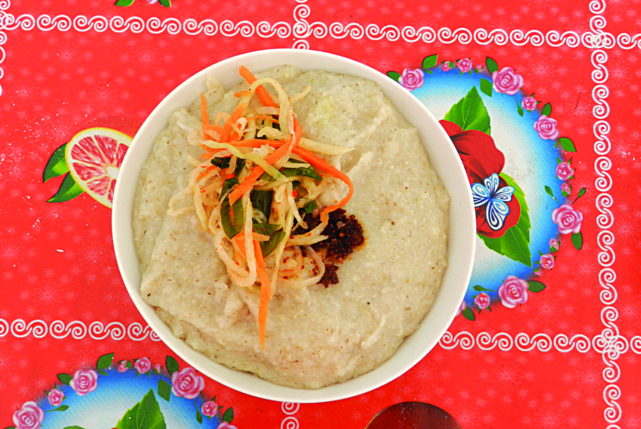 民樂縣屬山地和傾斜高平原地區(qū),由于特殊的地理位置、生態(tài)環(huán)境和氣候條件,使青稞這類高原農(nóng)作物在南豐鄉(xiāng)一帶大量種植。當?shù)厝酥饕郧囡秊槭常鶕?jù)青稞的特性,逐步探索出了珍子稠飯這種吃法。 青稞碾去皮,磨成顆粒狀叫“珍子”,煮成稠粥,撒上白面或青稞面攪釀即成。食用時搭配酸辣白菜或咸沙蔥,別有風味。加上山藥(洋芋)塊者為“山藥珍子飯”或叫稀飯,是20世紀六七十年代農(nóng)村冬季的主要早飯。 珍子稠飯制作方便、簡單,具有清腸、調(diào)節(jié)血脂、降低膽固醇、阻抗腫瘤、提高免疫力等作用。 2015年8月13日,珍子稠飯(張掖地方風味小吃制作技藝)被張掖市人民政府列入張掖市第三批市級非物質(zhì)文化遺產(chǎn)代表性項目名錄。 保護單位:張掖市民樂縣文化館。