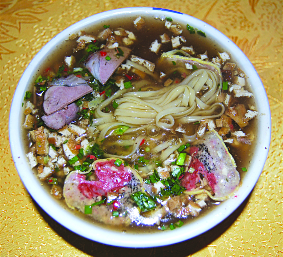 甘州臊面是張掖有名的漢族傳統(tǒng)小吃,深受甘州人民群眾的喜愛,不僅是日常飲食的主食之一,更是必不可少的傳統(tǒng)早餐。 甘州臊面無論是從口味還是做法上都與外地的臊面不同,講究“薄、亮、筋”,就是面要薄,湯要亮,面條吃起來要筋道、軟滑。所用的面條是用雙搟杖搟的,最多時一張面可達15公斤,搟好后,切成的面條形同韭葉,薄似紙片,長如絲帶。湯以雞湯為佳,牛、豬排骨湯亦可,加入胡椒粉、姜粉、醋、醬油等調(diào)味品及適量水淀粉,使湯達到一定的色度和濃度,最后配以白水肉丁、油炸豆腐片、蔥花、香菜等佐料即可。勾好后的湯外觀晶亮透明,色香誘人,若再配以特色餡的包子,食之更是回味無窮。 2015年8月13日,甘州臊面(張掖地方風味小吃制作技藝)被張掖市人民政府列入張掖市第三批市級非物質(zhì)文化遺產(chǎn)代表性項目名錄。 保護單位:張掖市甘州區(qū)文化館。