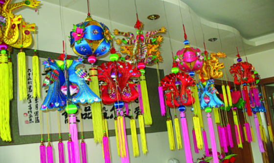 民樂王氏宮燈掛件先祖是清代末期在古都西安制作經營宮燈的老藝人,在民國年間傳至甘肅河西走廊。宮燈掛件制作到了王秀娥已是第四代傳人,她在古代制作技藝的基礎上,結合現代工藝材料,精心設計創作,使幾乎失傳的民間宮燈藝術又放異彩。宮燈掛件品種繁多,具有濃厚的地方特色。制作和繡球相似,精選上好布料,按照宮燈的樣式裁剪制作,然后組合而成。宮燈的構圖新穎,繡繪精細,講究色彩搭配,以配色獨特、針腳細密、圖案明快大氣見長,作品中透著一種奢華富麗之氣。常見的作品有“巨龍騰飛”“百年好合”“連年有余”“龍鳳呈祥”等。如“巨龍騰飛”是由6條樣式一樣的龍組合而成,“連年有余”是由8條樣式一樣的魚組合而成,寄予人們對美好生活的憧憬,成為饋贈親友的禮品。宮燈掛件造型優美,宜書宜畫,撐合自如,易于保存,既可作為喜慶飾品,又可用于藝術宣傳。宮燈掛件是中華民族文化藝術的瑰寶,它以歷史悠久、技藝精湛、門類豐富、傳世佳作蜚聲海內外,既是文化藝術精品,又是日常生活用品,與人民生活息息相關。在追求個性化的今天,宮燈掛件以其獨特的藝術魅力、裝飾和實用的性能、手工制作帶來的樂趣,又重新在我們身邊流行起來,帶來巨大的市場前景。王氏宮燈掛件作品逐步銷往全國各地,深受人們的喜愛,是民樂縣文化產業的支柱之一。 2010年7月6日,民樂宮燈掛件制作工藝被張掖市人民政府列入第二批張掖市非物質文化遺產代表性項目名錄。保護單位:張掖市民樂縣文化館。