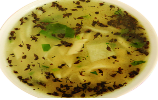 生活在民樂的人們,發(fā)現(xiàn)當?shù)厣L的一種野生植物羊胡花適合放在飯里面做點綴,是一種非常香的輔料,羊胡花熗面旗便隨之產(chǎn)生。將小麥面用淡鹽水和好,在鍋里加水至沸騰,放入切好的蘿卜片,將和好的面在案板上用搟面杖搟成薄餅后切成菱形狀的小面片,下入鍋里,面煮熟后,用勺子煉好油,將準備好的羊胡花放進勺子里,待羊胡花成黑色狀、溢出香味時潑進鍋里,此時香味撲鼻的羊胡花熗面旗就可出鍋食用了。羊胡花熗面旗是勞動人民在長期的勞動生產(chǎn)、生活中創(chuàng)造出來的,既營養(yǎng)又健康,具有濃厚的鄉(xiāng)土氣息,以味道獨特見長,價格相對低廉,在競爭激烈的餐飲業(yè)中占據(jù)了一席之地,受到人們的青睞,已成為當?shù)氐穆糜挝幕a(chǎn)品之一。 2015年8月13日,羊胡花熗面旗(張掖地方風味小吃制作技藝)被張掖市人民政府列入張掖市第三批市級非物質(zhì)文化遺產(chǎn)代表性項目名錄。保護單位:張掖市民樂縣文化館。