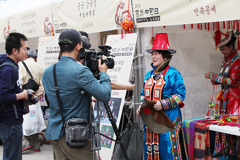 裕固族服飾國家級傳承人柯璀玲參加“首爾中國日”接受當地媒體采訪