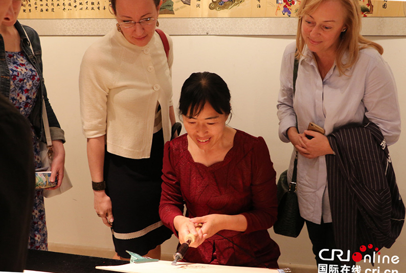 山丹縣非遺傳承人周玉梅在莫斯科中國文化中心現場展示烙畫制作工藝