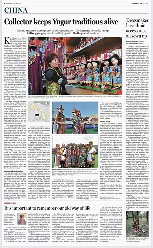 《中國日報》關注報道張掖市裕固族非遺傳承人 圖片來源:中國日報