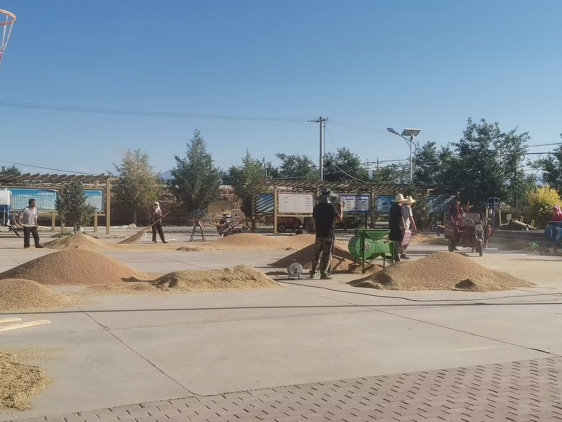 走進三三村文體廣場,村民宋克林正聯合街坊鄉鄰裝運完成晾曬的小麥為即將到來的“晾曬大軍”騰好曬場。在四壩村文體廣場,只見鄉村舞臺前的文體廣場上一片“金黃”,攤曬平整的小麥在“日光浴”中散發著陣陣清香,村干部季友兵介紹說,自文體廣場開放以來已有17戶村民在此晾曬糧食23000余斤。