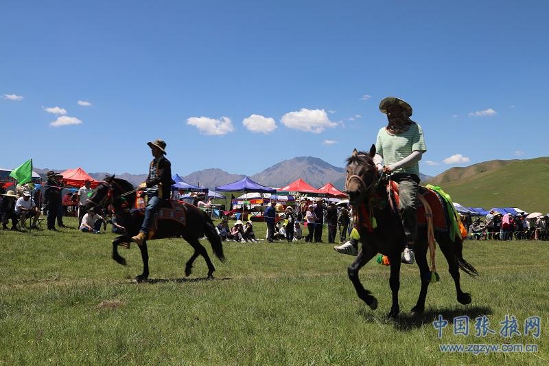 中國張掖網肅南訊 賽馬歡騰,人流如織,7月18日,一年一度的肅南縣馬蹄藏族鄉嘉吾拉日傳統文化藝術節盛大開幕,淳樸善良的藏鄉群眾載歌載舞、歡聚一堂,慕名而來的各方游客觀賞賽馬、品味美食,現場氣氛熱烈,宛如置身歡樂的海洋。