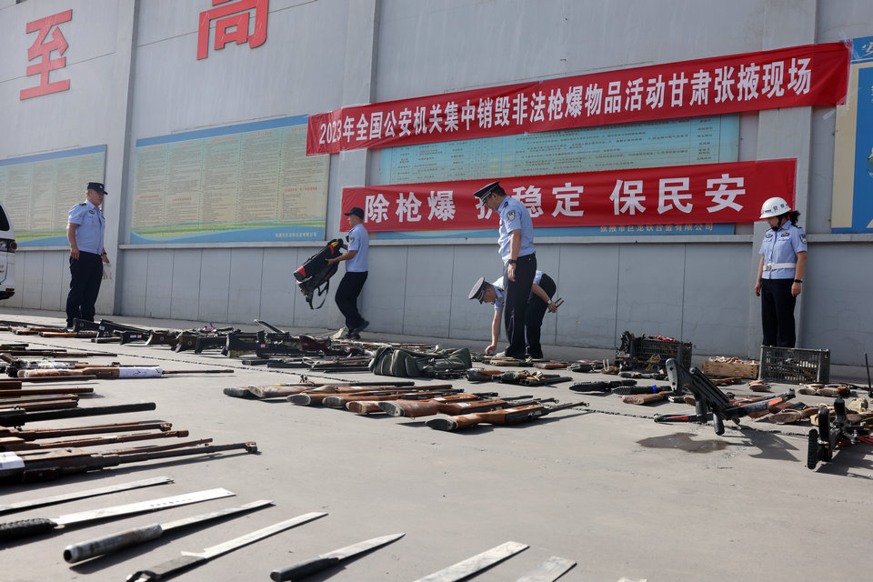 中國張掖網(wǎng)訊 為充分展現(xiàn)夏季治安打擊整治行動和打擊整治槍爆違法犯罪專項(xiàng)行動工作成效,掀起新一輪宣傳發(fā)動攻勢,推動打擊整治工作深入開展,按照公安部、省公安廳統(tǒng)一部署,9月14日上午,張掖市公安局組織開展非法槍爆物品銷毀活動,在張掖巨龍鐵合金有限公司集中銷毀自2022年以來收繳的非法槍支162支、仿真槍12支、管制刀具585把、弓弩23把等非法物品。(馬興國)