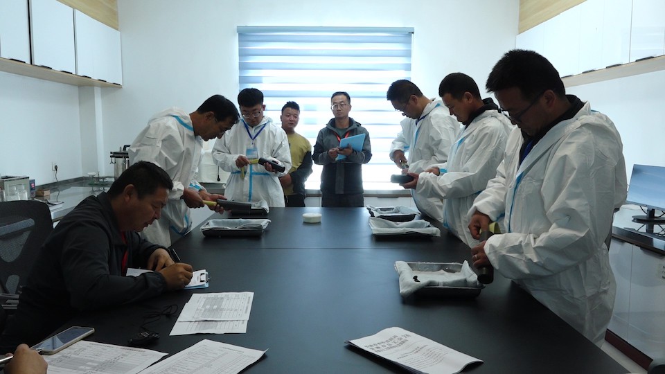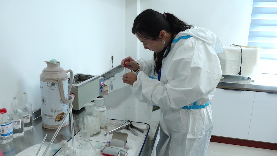競賽采取理論知識考試和現(xiàn)場技能操作考核相結合的形式,其中理論知識考試占30%,現(xiàn)場技能操作考核占70%,包括羊的精液質量評定、發(fā)情鑒定和人工授精等專業(yè)知識。共有5支代表隊24名家畜繁殖員參加競賽,選手們精準操作,展現(xiàn)了良好的理論功底和嫻熟的操作技能。