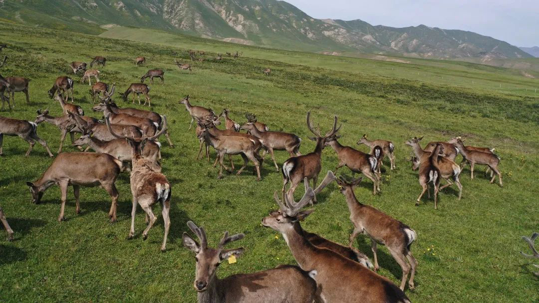 祁連山馬鹿主要以收茸為主,每只鹿每年可收獲鹿茸3.6公斤左右,飼養1頭祁連山馬鹿年消耗5只羊的食草量,卻能獲得相當于30只羊的經濟效益。同時,通過人工繁育養殖不僅滿足了市場需求,有效保護野生動物,維持了生態平衡,也保護了草原植被,減輕了草場壓力,提高了農牧民群眾收入。