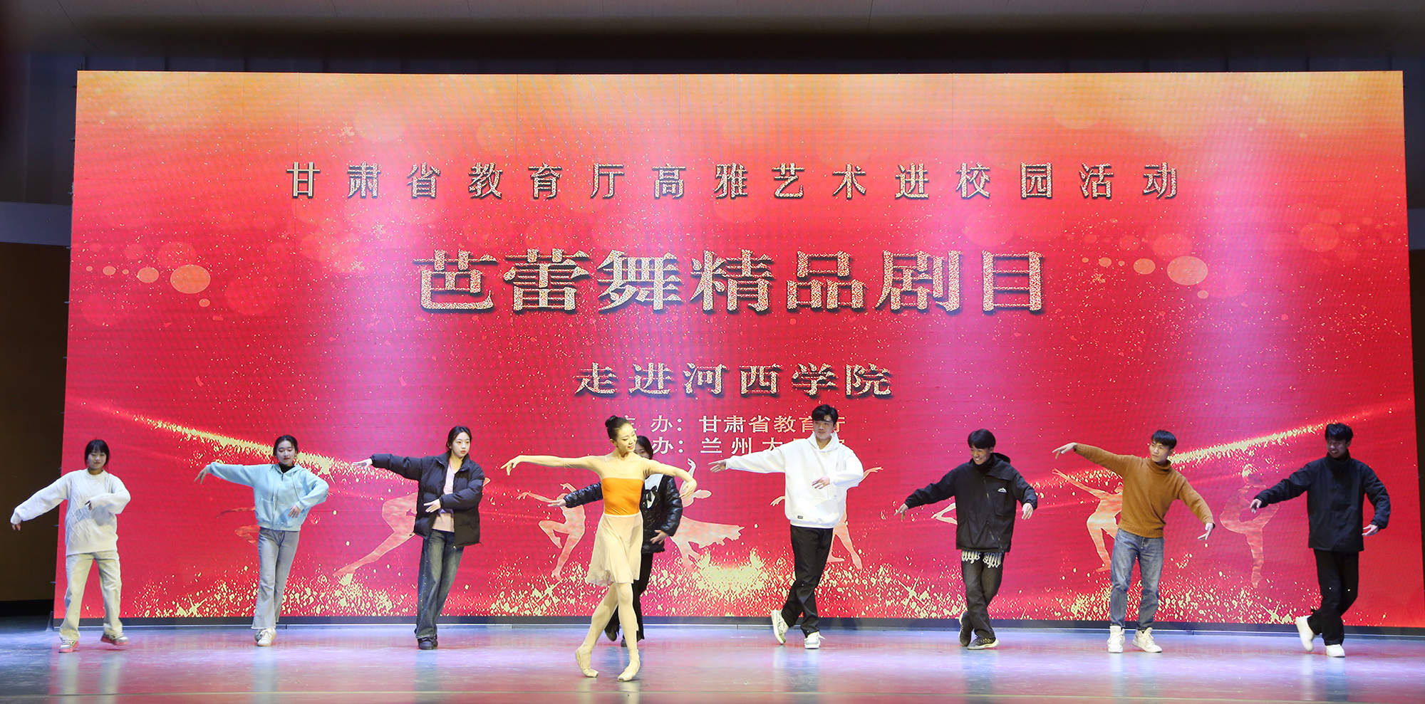 高雅藝術進校園活動由教育部、文化和旅游部、財政部主辦,是培養學生良好的審美情趣和藝術素養而實施的重大工程。多年來,學校堅持以經典文化打“底氣”,以精品活動養“文氣”,以核心價值立“正氣”,連續九年開展了高雅藝術進校園系列活動,經典舞劇《大夢敦煌》《絲路花雨》《西京故事》等一批精品藝術先后走進學校,無論是悠久厚重的敦煌文化、磅礴恢弘的民族交響樂、緊扣時代脈搏的秦腔經典故事,還是曼妙優雅的芭蕾舞劇,每年的這場藝術盛典,都讓河西學院人在音符里燃點期望,在藝術中祝福明天。