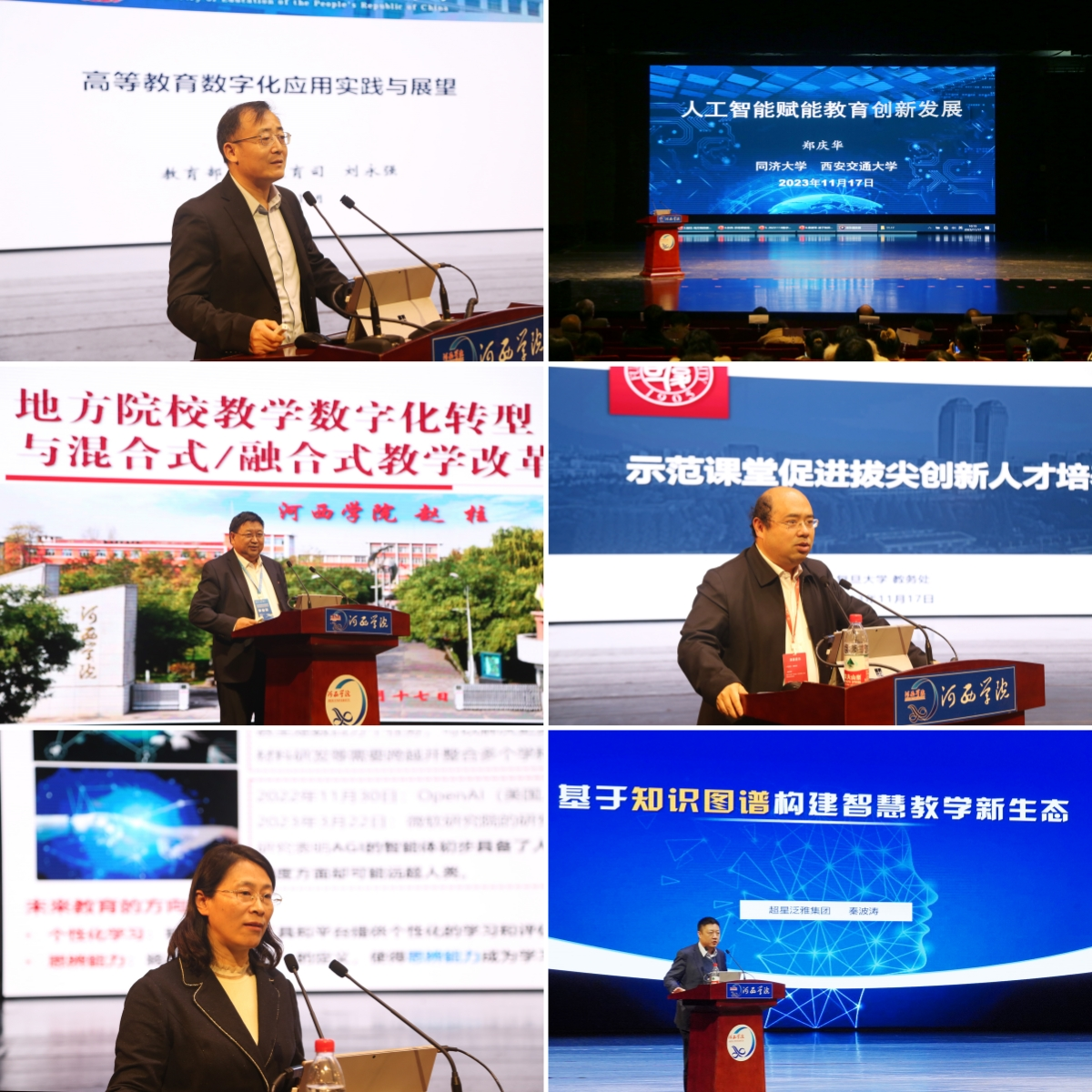 在主會場階段,教育部高等教育司課程教材與實驗室處處長劉永強、同濟大學黨委副書記、校長鄭慶華教授(線上),河西學院黨委常委、副校長趙柱教授,復旦大學教務處處長林偉、華東師范大學教務處處長周先榮、超星泛雅集團總經理秦波濤分別作了《高等教育數字化應用實踐與展望》《數字化賦能教育轉型與創新》《地方院校教學數字化轉型與混合教學改革》《示范課堂促進拔尖創新人才培養》《數字化賦能教師教學發展:華東師范大學的探索與實踐》《基于知識圖譜構建智慧教學新生態》主旨報告。