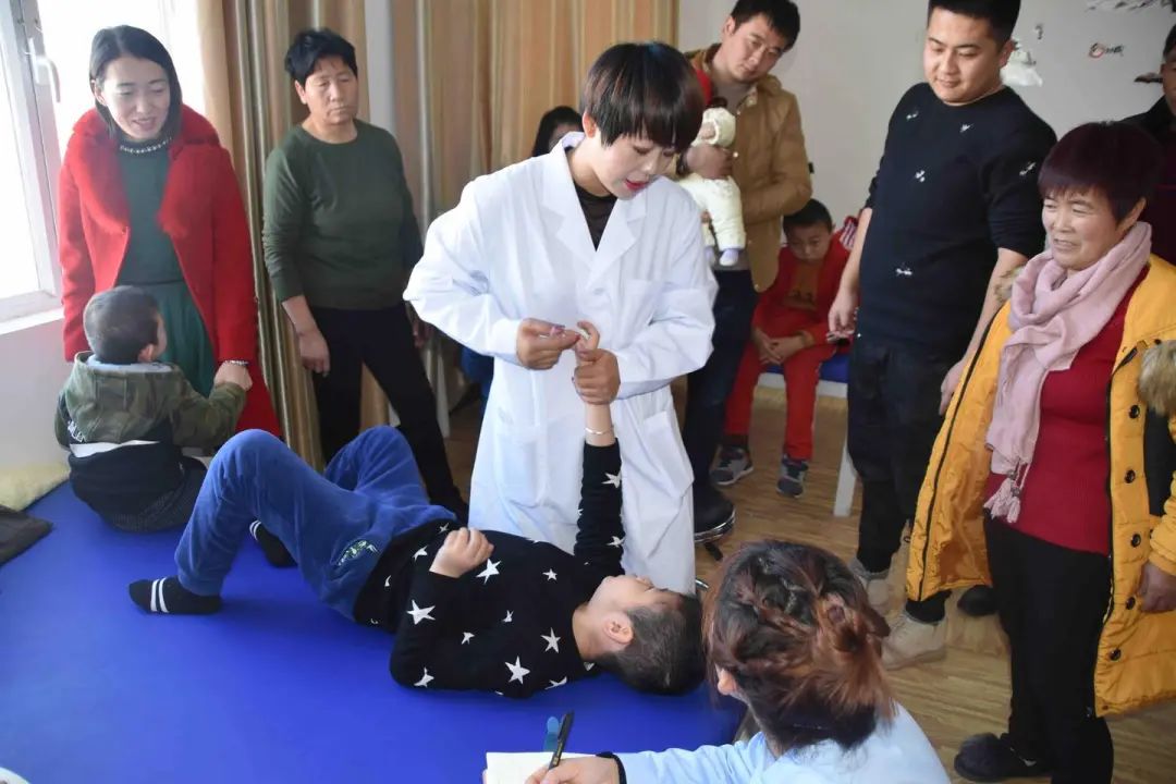 山丹縣溫馨日間照料中心l理事長莊月英為殘障兒童開展康復治療