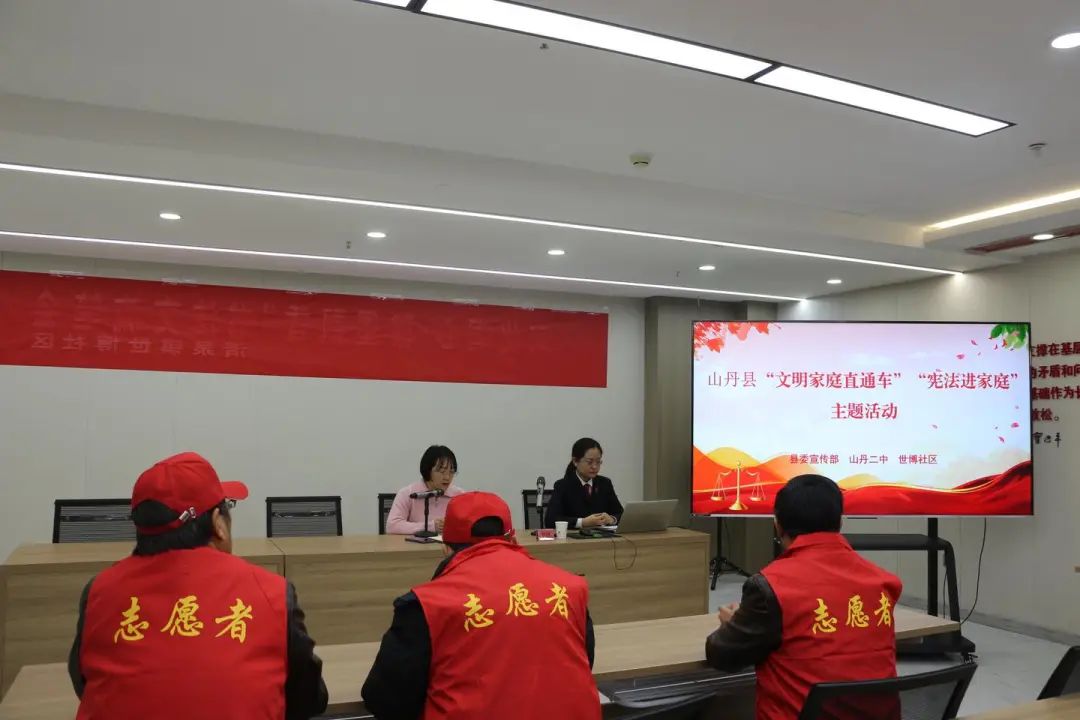 12月6日,山丹縣“文明家庭直通車”任曉家庭組成小分隊,深入山丹縣世博社區開展“憲法進家庭”主題活動。活動中,任曉結合實際案例,向居民群眾講解習近平總書記關于注重家庭家教家風建設的重要論述、民法典關于未成年人保護、婚姻家庭方面的規定以及自身先進事跡,用自身故事教育和影響身邊人,讓憲法真正走進尋常百姓家。