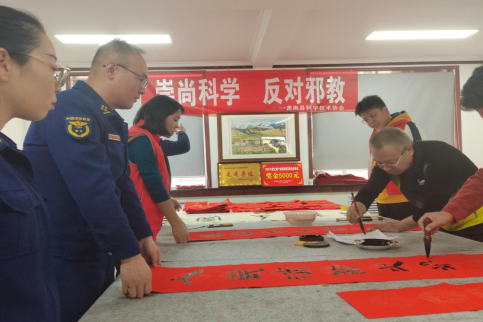 臨澤縣科協積極發揮科普大篷車展教作用到倪家營鎮開展“我為鄉親寫春聯”送春聯下基層活動,突出崇尚科學,反對邪教,引領時代風尚,書寫墨韻清風的活動主題,積極引導廣大農民群眾相信科學、破除迷信、遠離邪教,自覺抵制邪教,增強預防和抵制邪教的能力,營造清風正氣的社會環境。