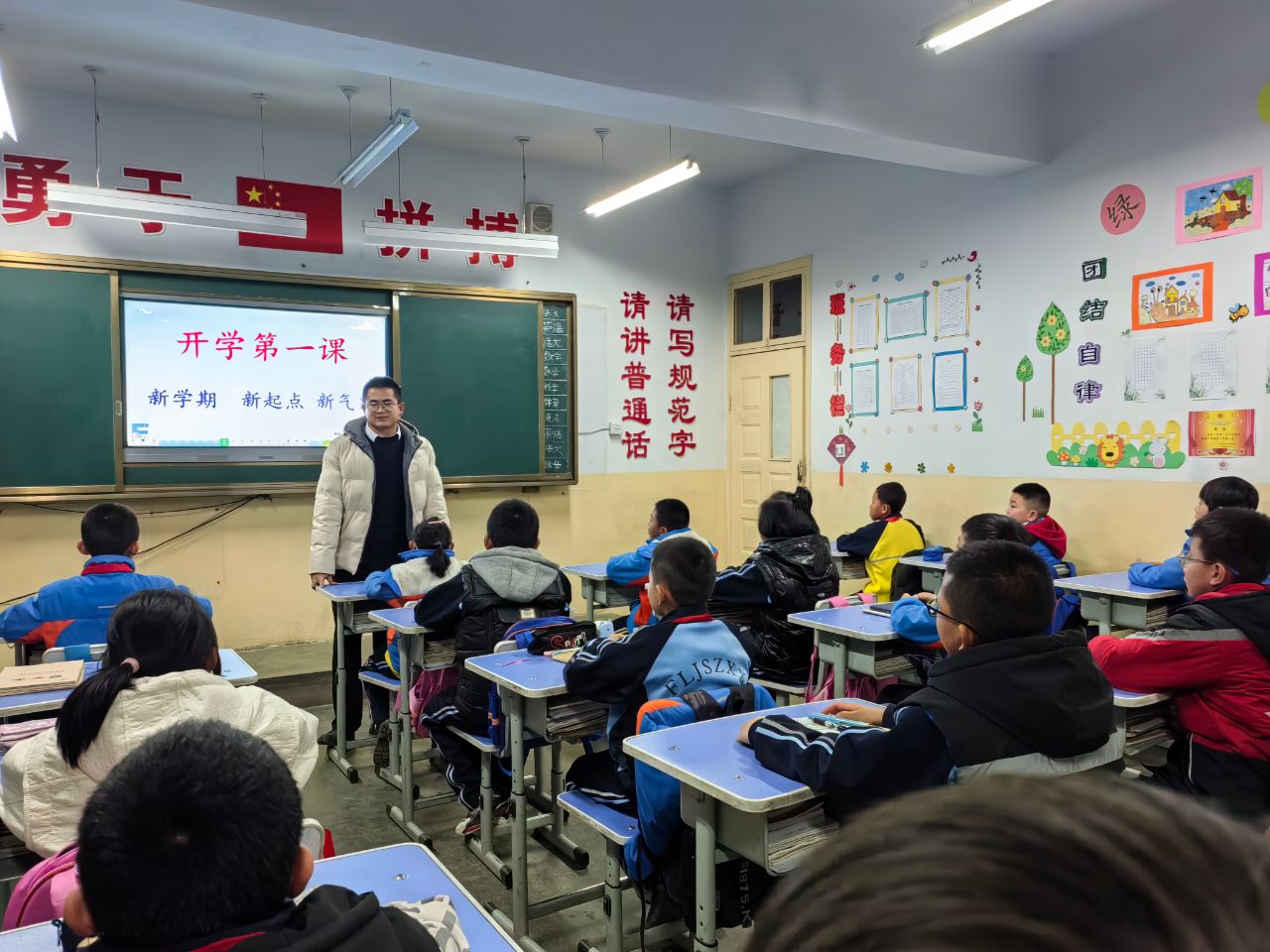 在今年的“開學第一課”上,該校將愛國主義教育融入到“開學第一課”當中,教育引導孩子們聽黨話、跟黨走,厚植愛黨、愛國、愛社會主義的情感。課堂上,老師們圍繞新學期新目標、愛國教育、安全行為、習慣養(yǎng)成以及小學生行為準則等內(nèi)容,通過交流互動、課堂討論等形式,教育引導學生樹立理想信念、畫好學期藍圖、堅定學習目標,幫助學生調(diào)節(jié)開學心理狀態(tài),激發(fā)學生的學習興趣,增強學生的安全意識。
