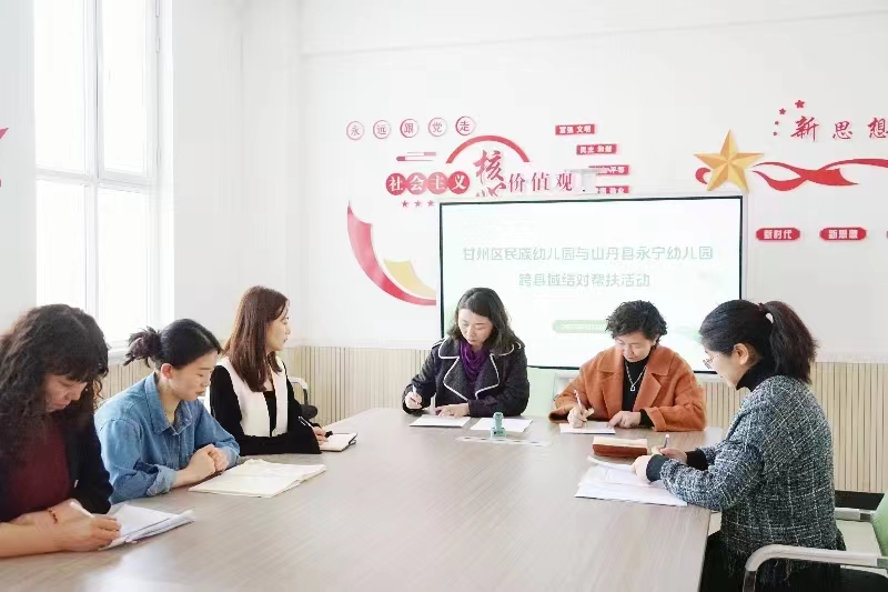 幫扶團隊通過實地查看、座談交流,了解了山丹縣永寧幼兒園的辦園規模、師資隊伍、招生現狀、環境創設及教育教學情況,了解了永寧幼兒園的幫扶需求,分析了幼兒園面對的困難及今后需要促進的方面。雙方幼兒園共同商議確立了幫扶目標和任務,制定了切實可行的幫扶計劃,并簽訂了結對幫扶協議。