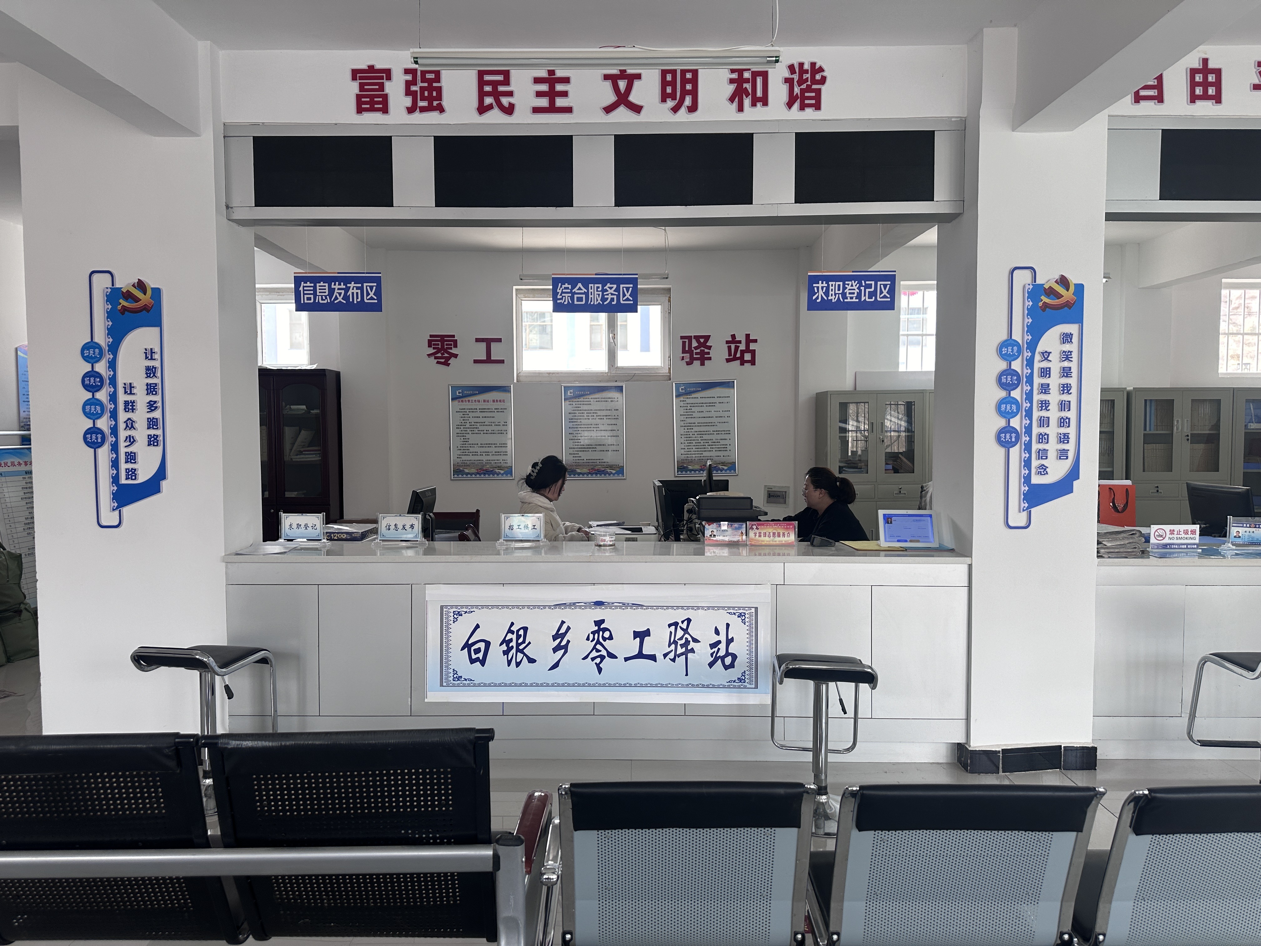 提供便民服務設施設備,建立“零工驛站”服務鏈。白銀鄉零工驛站室內面積為100㎡,是一個純公益性便民服務平臺。驛站采取與現有便民服務中心共享場地設施的辦法,設立了咨詢窗口,配備專職導服人員2名,為務工人員和用工單位提供零工調劑、零工共享、招聘和求職指導等有針對性的公共就業服務。同時,還設有信息公示區、休息區等,配備電腦、打印機、飲水機等必要設施設備,進一步拓展服務項目,延伸服務鏈。
