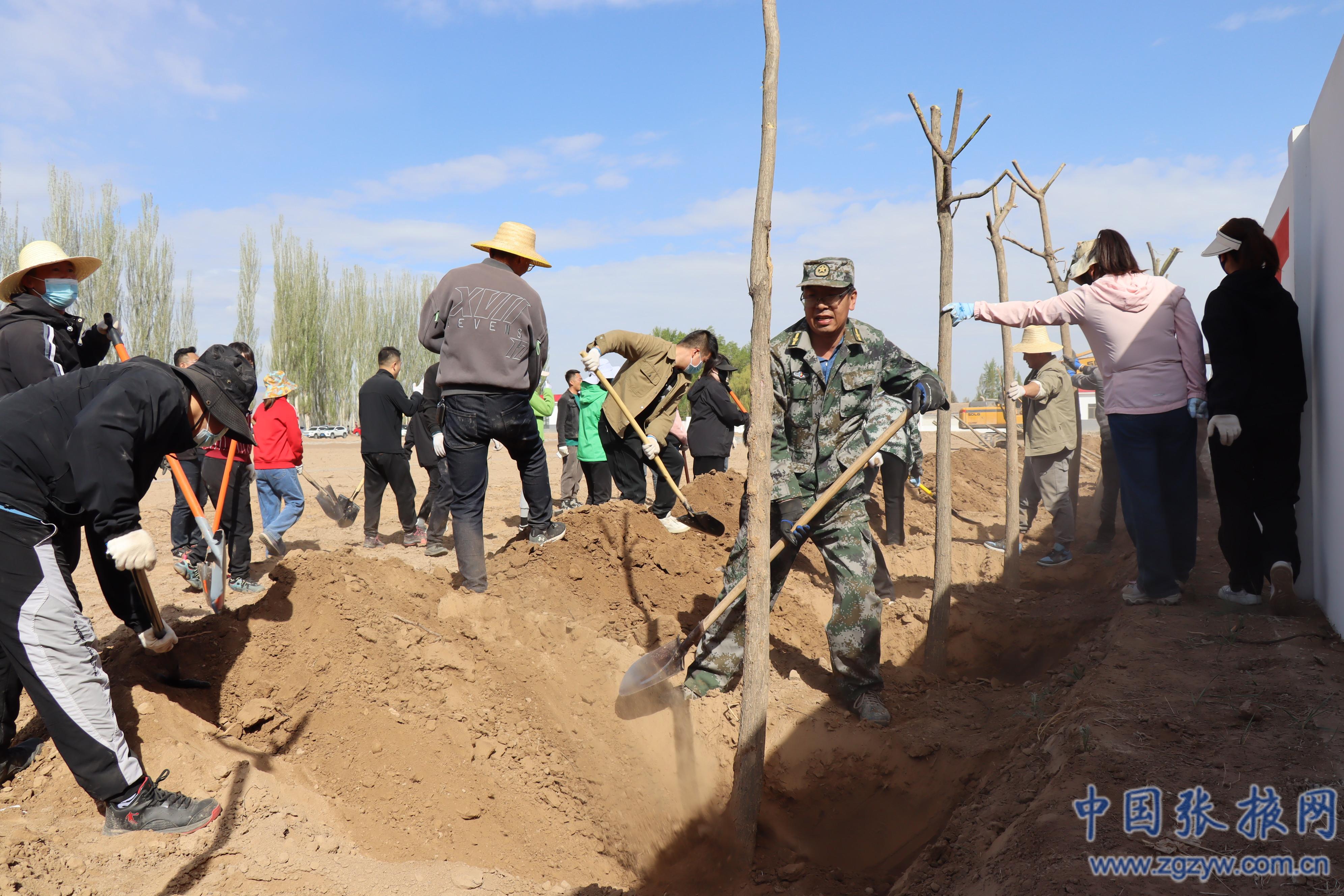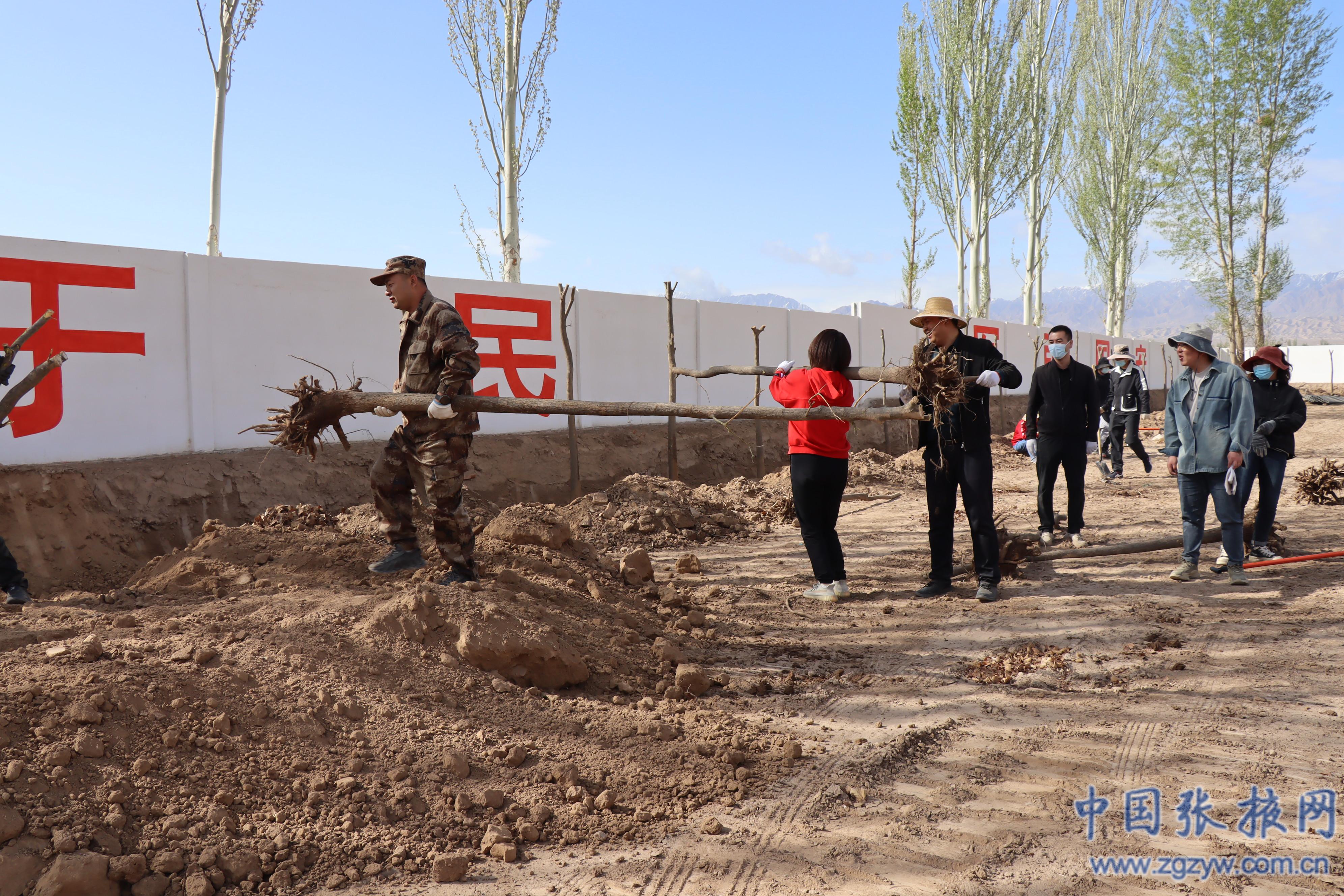 中國張掖網甘州訊 近日,甘州區龍渠鄉組織機關領導干部及公益性崗位人員80余人開展2024年春季義務植樹活動,以實際行動踐行綠色發展理念。