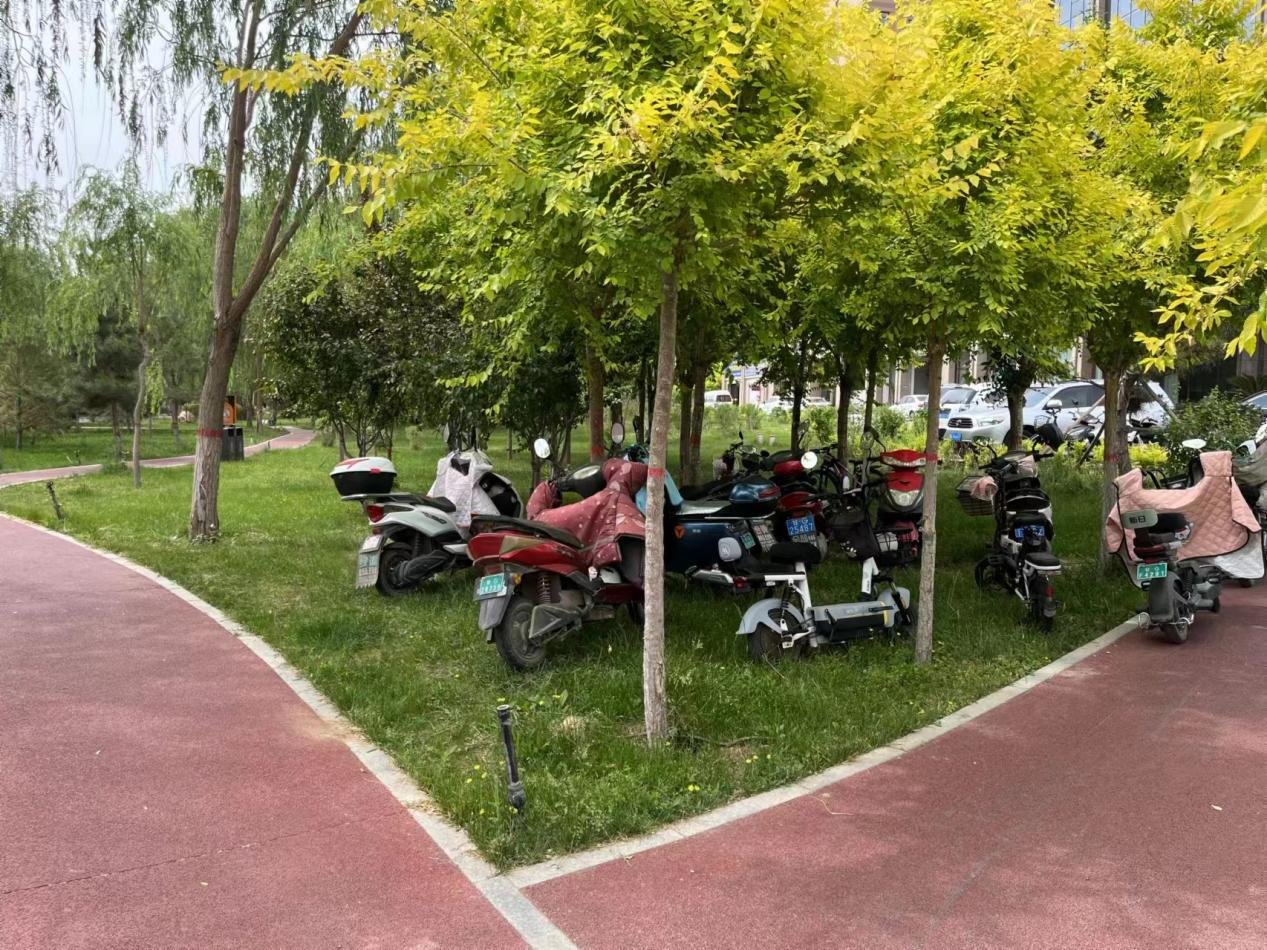 記者走在甘泉公園發現,大多市民能做到文明游園,但仍有個別市民出現遛狗不牽繩、隨意停放車輛等不文明行為。