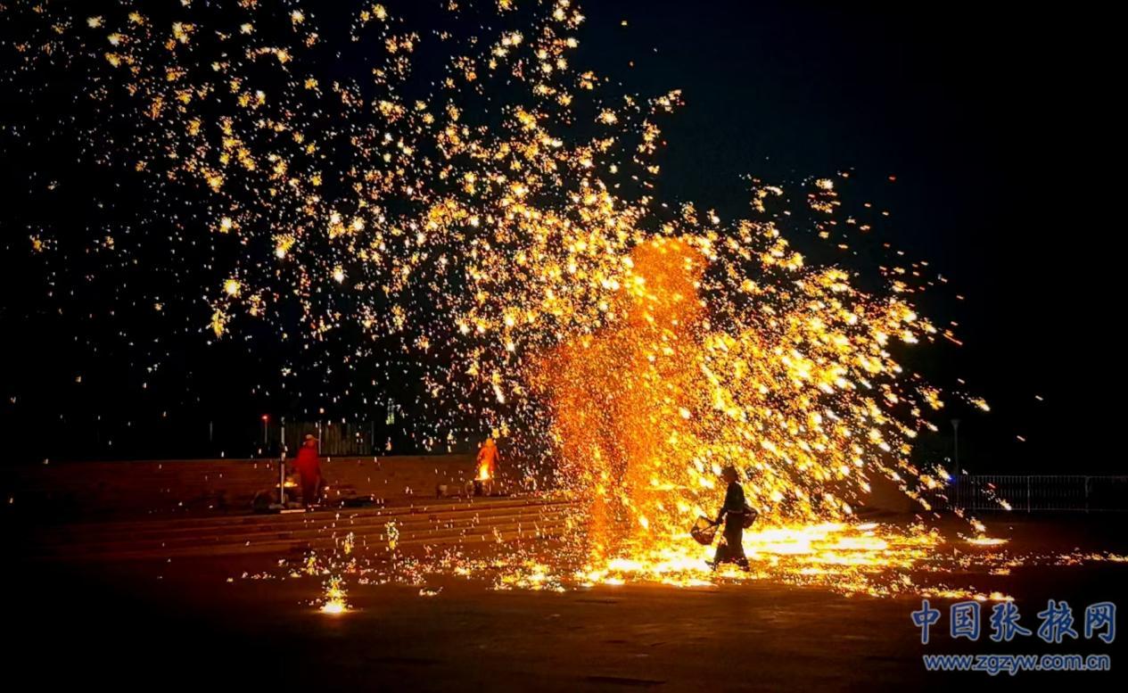 國家級非遺“打鐵花”絢麗綻放七彩丹霞嘉年華無人機表演 “景”上更添花