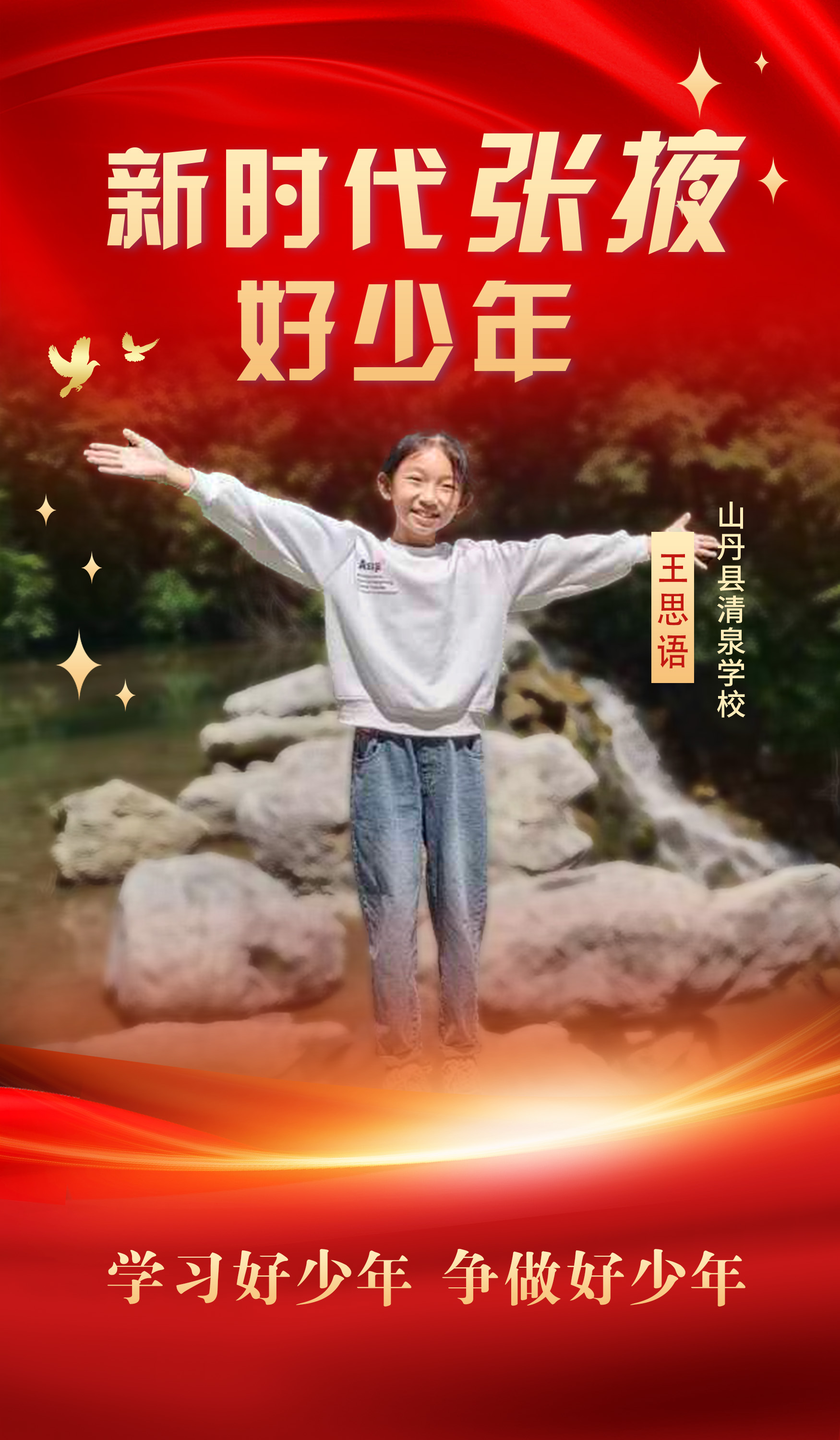 王思語,女,12歲,山丹縣清泉學校六年級(4)班學生。王思語同學品學兼優,尊敬師長,團結同學,學習刻苦,以良好的思想品質,優異的學習成績,全面發展的綜合素質,成為同學中的佼佼者。
