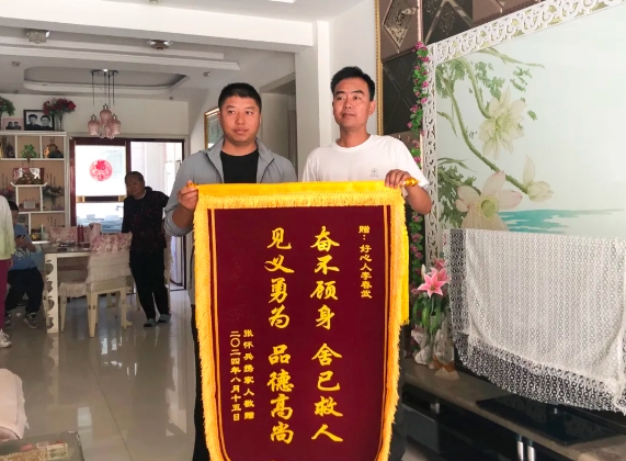 張懷兵將一面寫著“奮不顧身舍己救人見義勇為品德高尚”的錦旗送到李春武手中,激動地連聲道謝:“謝謝您,你是我們家的大恩人,要不是您,后果我都不敢想象!”