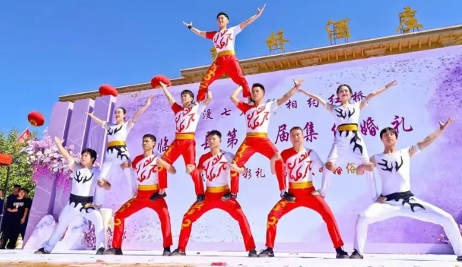 “集體婚禮儀式結(jié)束,舞蹈、雜技、詩(shī)歌朗誦等文藝節(jié)目也精彩亮相,為大家獻(xiàn)上了一道豐富的文化娛樂(lè)大餐。”七夕節(jié)當(dāng)天,舞蹈《昆卡》《錦瑟》,雜技《頂缸》《精武忠魂》等特色文藝節(jié)目表演在臨澤縣第五屆“浪漫七夕相約紅橋”集體婚禮現(xiàn)場(chǎng)精彩亮相,一陣陣熱鬧的歡笑聲傳來(lái)。