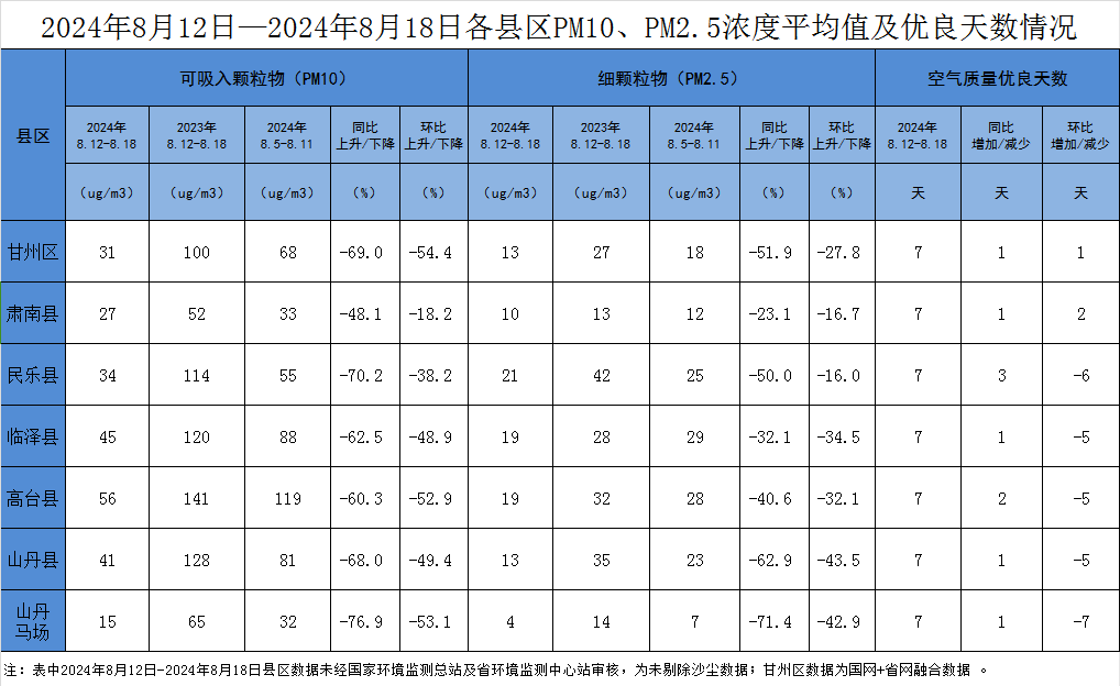 張掖市各縣區(qū)空氣質(zhì)量周報