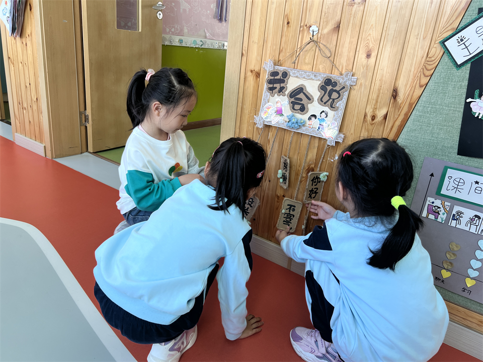 甘州區第一幼兒園從環境宣傳入手,利用電子屏、公示欄等形式向全園教師、家長發出倡議,增強自覺規范使用國家通用語言文字,樹立高度的文化自覺和文化自信,傳承弘揚中華優秀文化,營造濃郁的語言氛圍。“早上好!”“謝謝你!”“我來幫助你!”“老師再見!”看,孩子們在用普通話和老師、同伴打招呼。一聲聲稚嫩的童音,一句句禮貌用語凸顯著孩子們講文明、懂禮貌的良好品質。一個個生動有趣的表演,讓語言字字撒播在孩子們的心田,使他們在優美的普通話語言環境中自主發展,快樂成長。