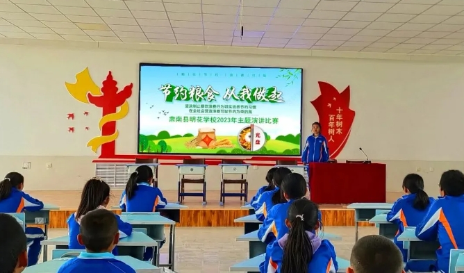 同時,肅南縣各學校大力推行“文明餐桌”行動,召開主題班會、利用宣傳板報、電子屏標語、餐桌標語牌等系列宣傳方式在潛移默化中幫助學生增強節(jié)糧意識,養(yǎng)成勤儉節(jié)約,愛惜糧食的好習慣。