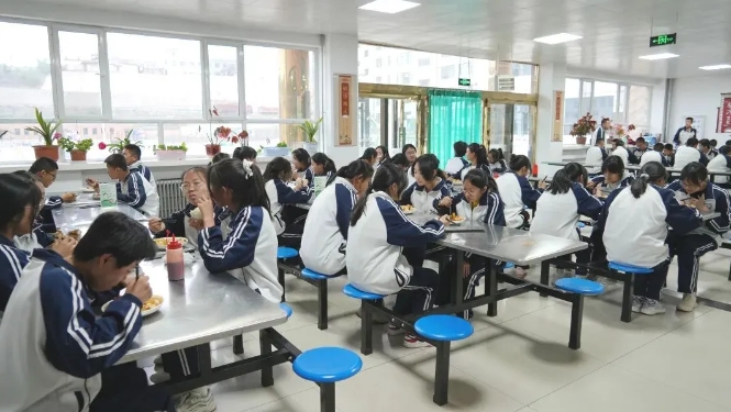 在肅南一中食堂,“厲行節(jié)約反對浪費”“光盤行動”等宣傳海報隨處可見,每個餐桌上都有節(jié)約糧食的標語,時時處處培養(yǎng)學生珍惜糧食的觀念。就餐時間,學生陸續(xù)進入餐廳就餐,有序排隊打飯。“食堂的良好秩序需要大家的共同努力,文明就餐,從我做起,從身邊的小事做起,注意就餐過程中的點點滴滴,我們會主動收拾餐具,文明就餐,努力營造一個溫馨的就餐環(huán)境。”肅南一中學生索楠央金說。