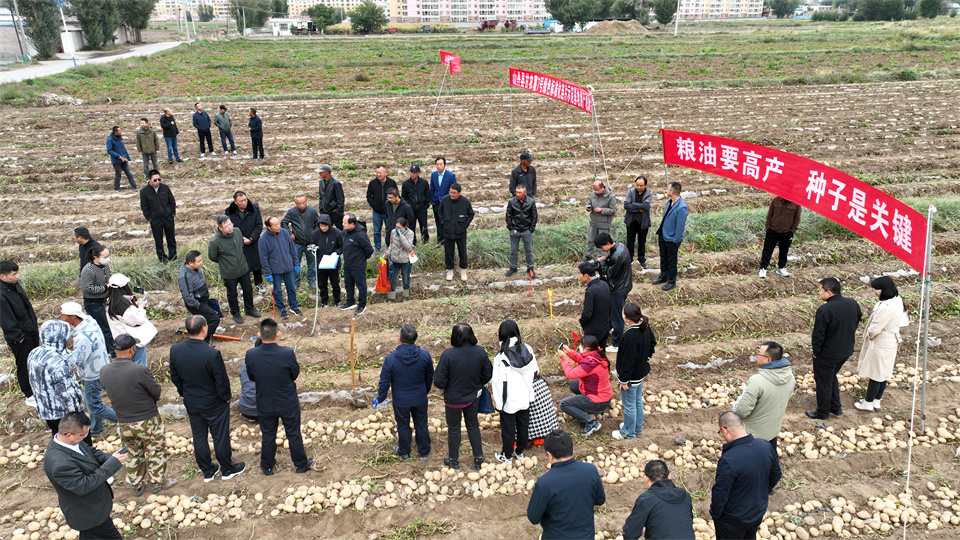 與此同時,在山丹縣清泉鎮南湖村,一場別開生面的甘農薯7號綠色標準化連片示范基地測產觀摩會正在舉行。此次活動由甘肅農業大學發起,并特邀測產專家,對由該校選育的馬鈴薯新品種——甘農薯7號進行了現場測產。