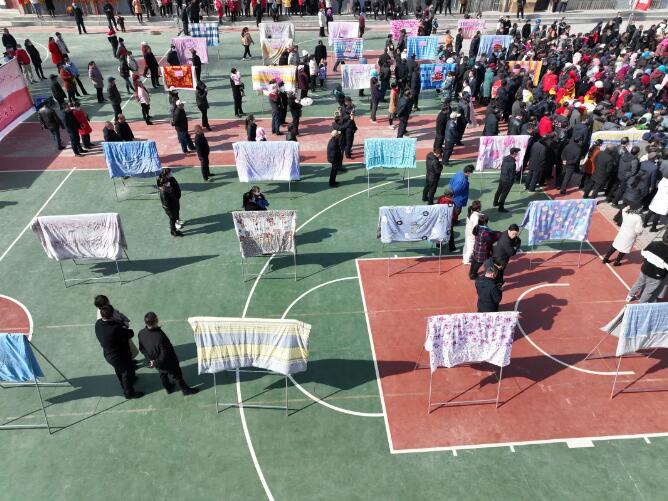 2023年2月21日,臨澤縣蓼泉鎮新時代文明實踐所組織開展“曬被子·比孝心”活動(賈斌攝)