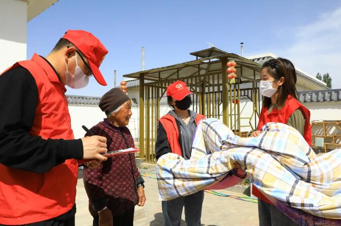 2023年3月,臨澤縣平川鎮蘆灣村開展“曬被子·比孝心”志愿服務活動(楊芮攝)